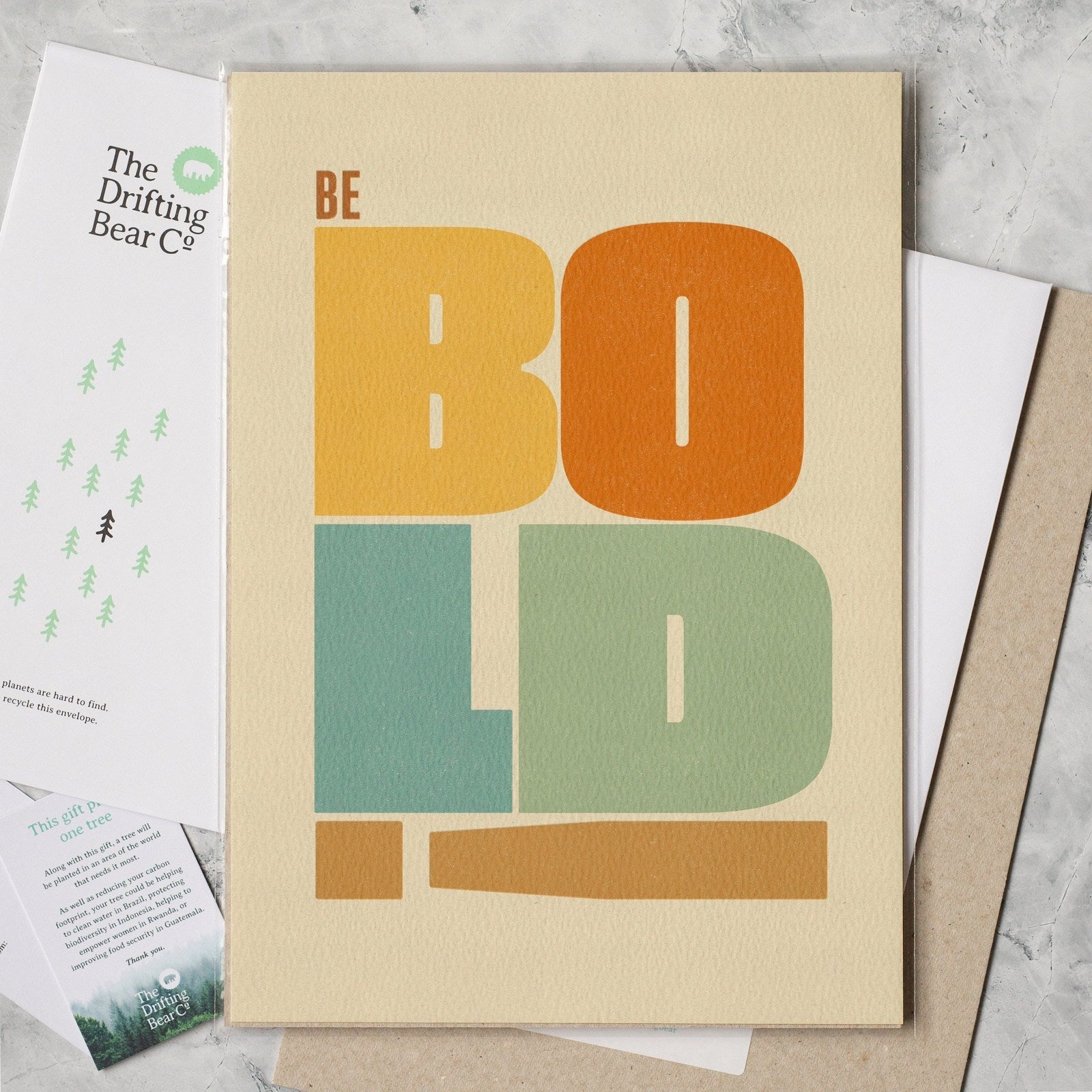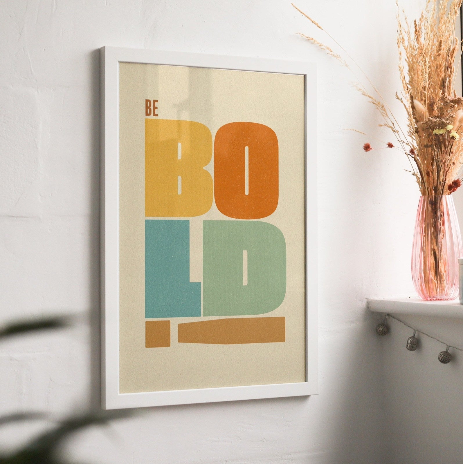 This colourful print features a fun typographic design of the words 'Be Bold!' in block text.