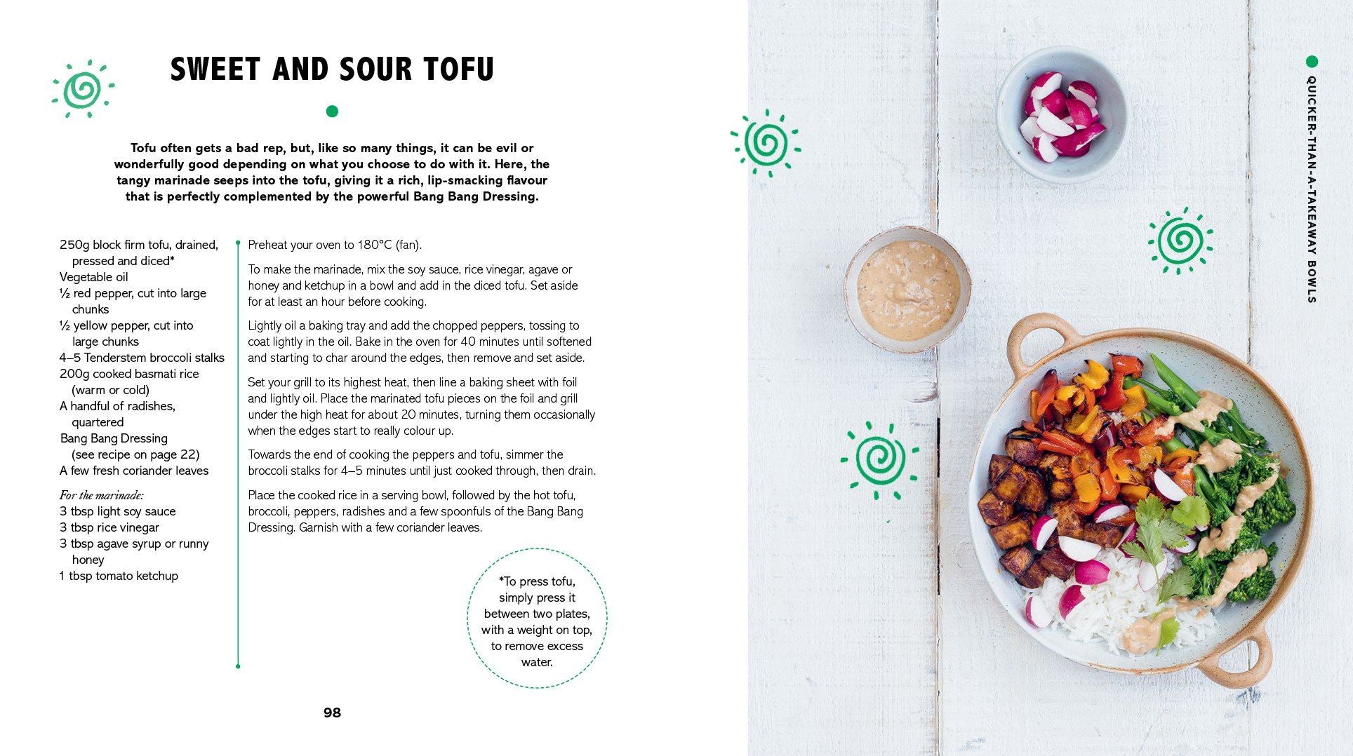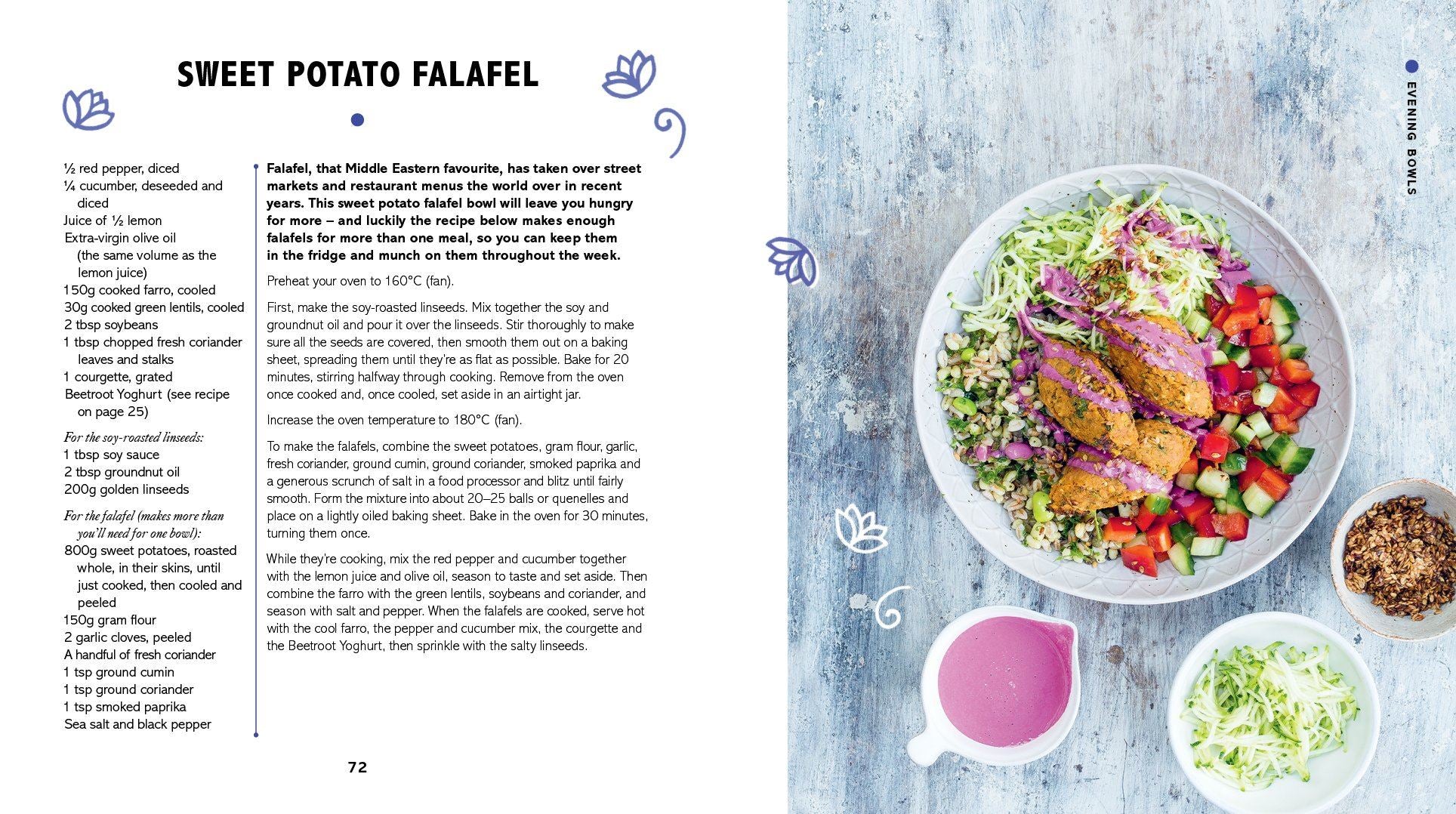 The new 'meat and two veg', Buddha Bowls ensures you get all the nutrients you need with no-fuss and no need for meat protein. Lunch Bowls are perfect for work lunch, Recovery Bowls offer comfort and refreshment after a workout, Quicker-than-a-takeaway Bowls offer deconstructed take-away favourites made healthy, Evening Bowls offer comfort and cosiness for an evening meal, and Dinner Party Bowls are ideal for sharing with friends. Learn how to build a perfectly balanced bowl and customize it with fresh ingredients, dressings, toppings and sauces.