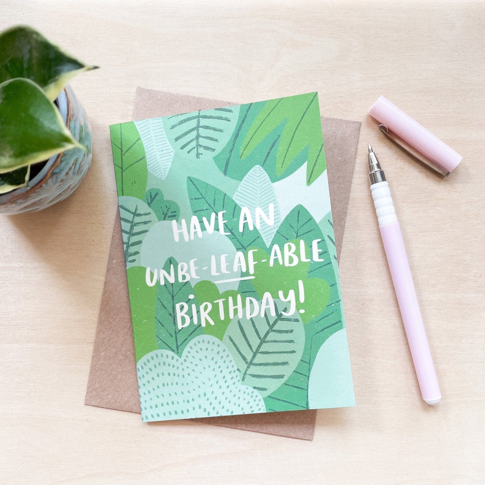 'Unbe-leaf-able Birthday' Recycled Coffee Cup Card