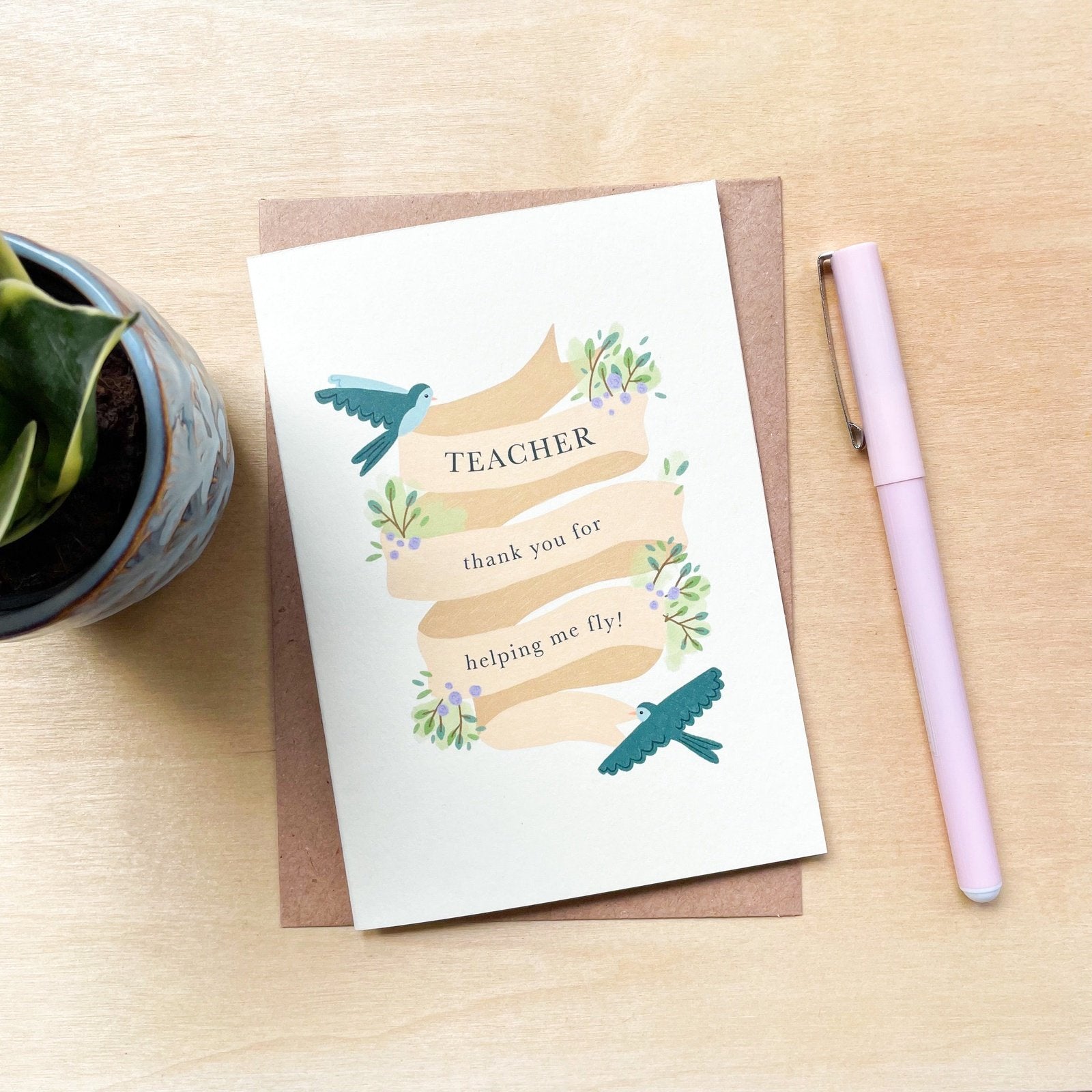 'Teacher, Thank You for Helping Me Fly' Recycled Coffee Cup Card