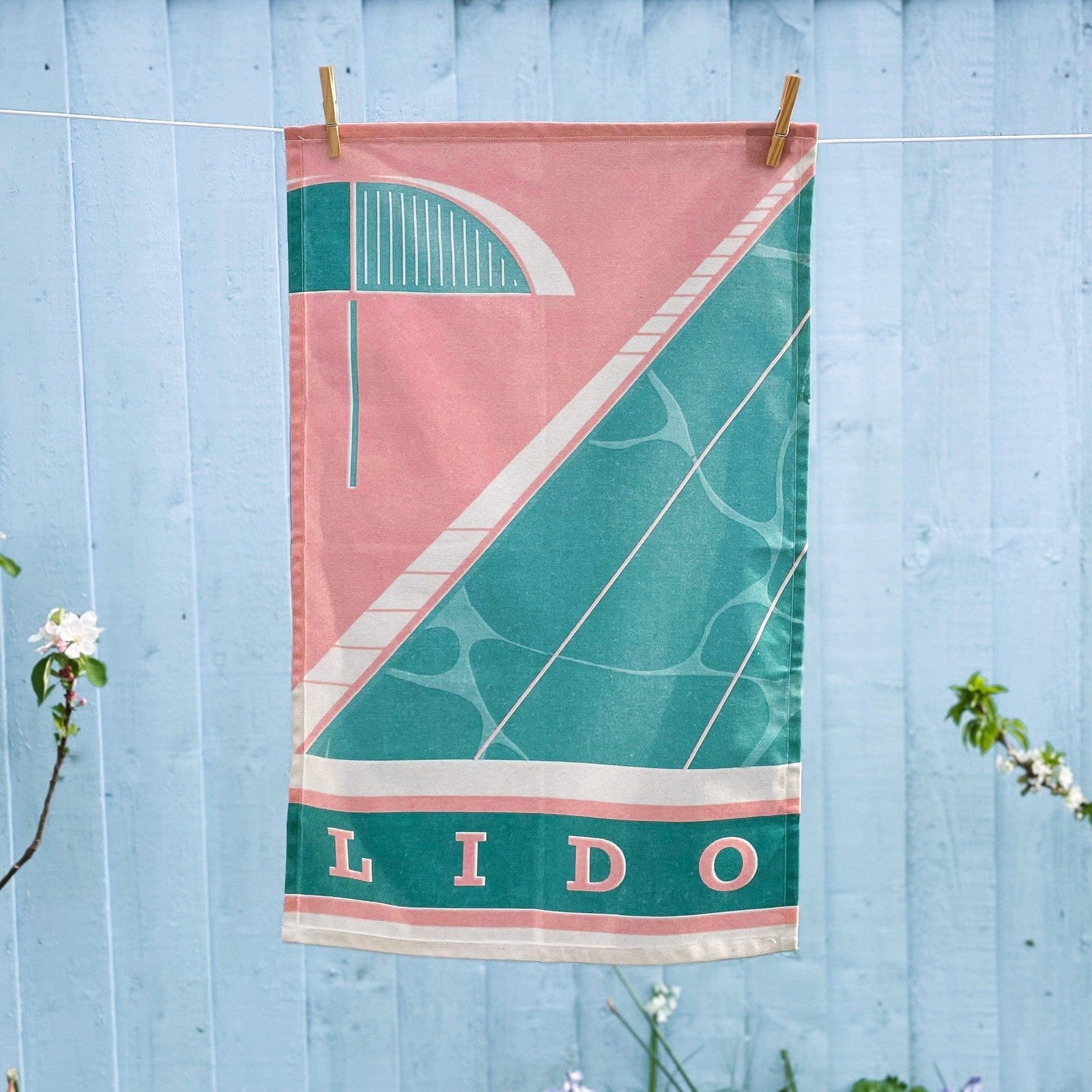 A bright addition to any kitchen, this tea towel shows the traditional lido with the sun reflecting on the water. A lovely reminder of sunny days laying by the pool.