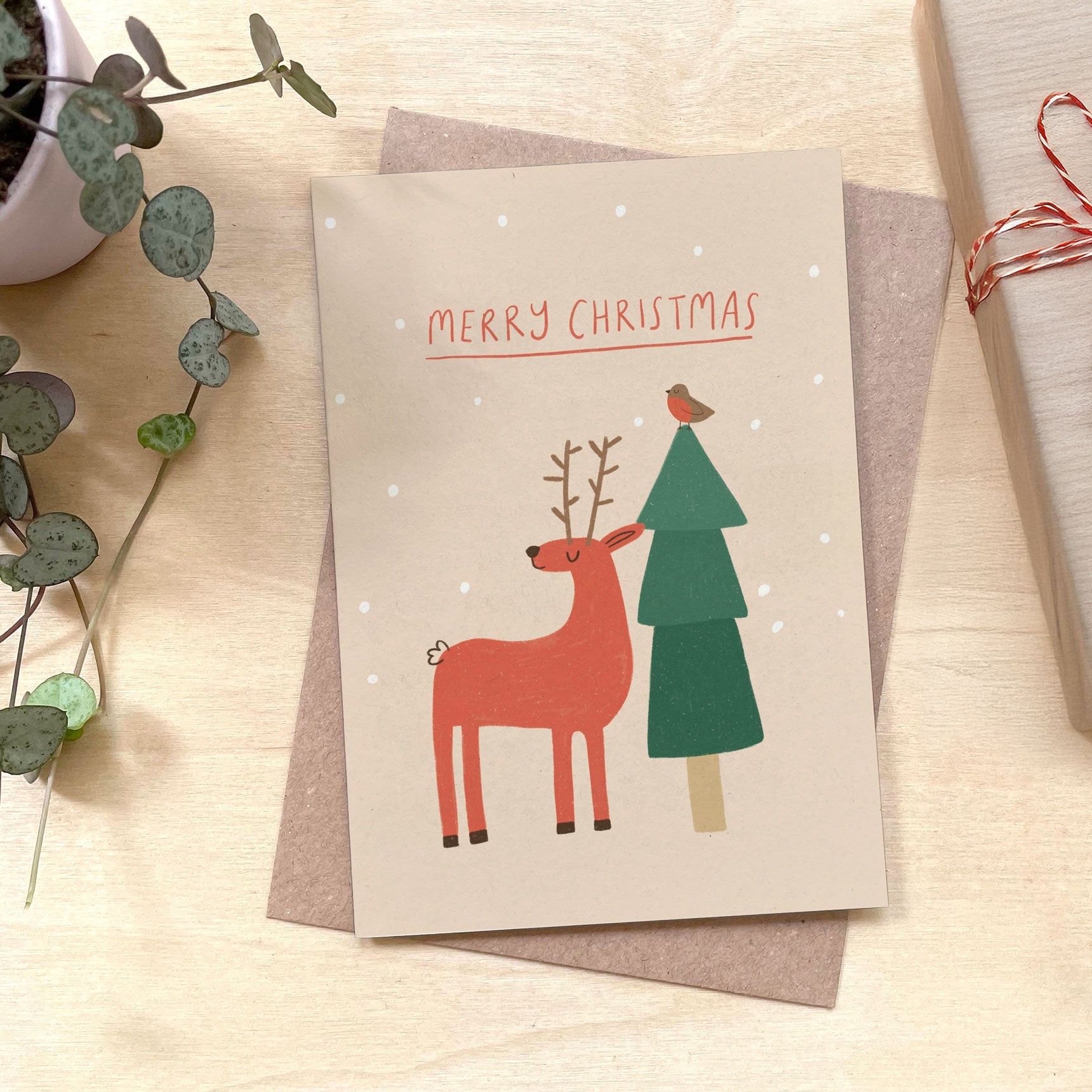 Deer & Robin Christmas Recycled Coffee Cup Card