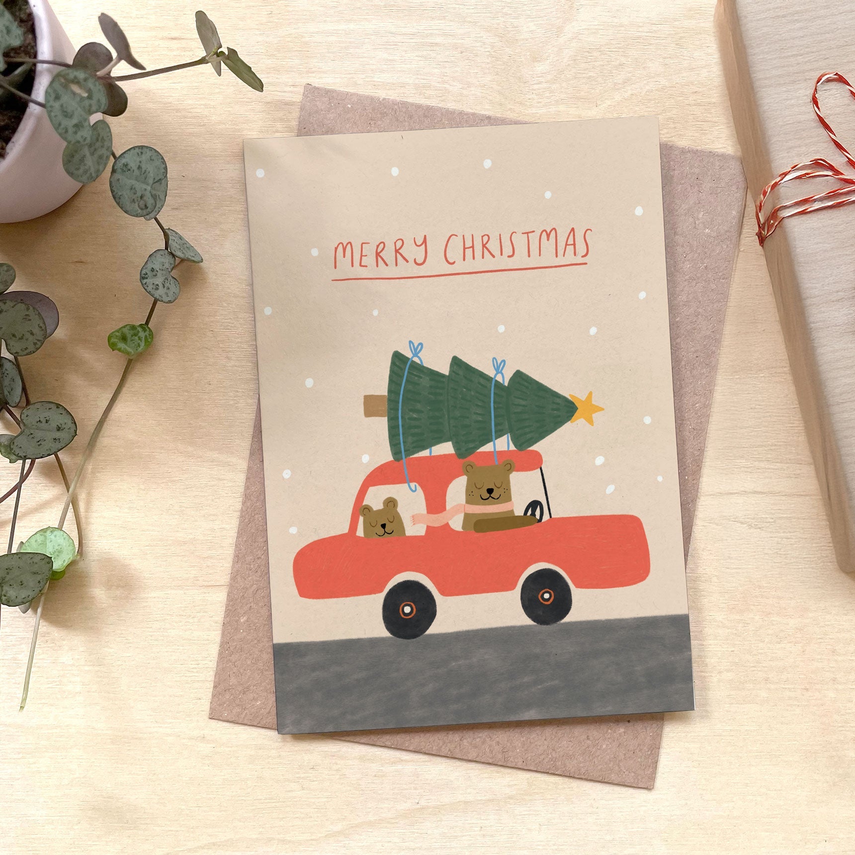 Driving Home for Christmas Recycled Coffee Cup Card