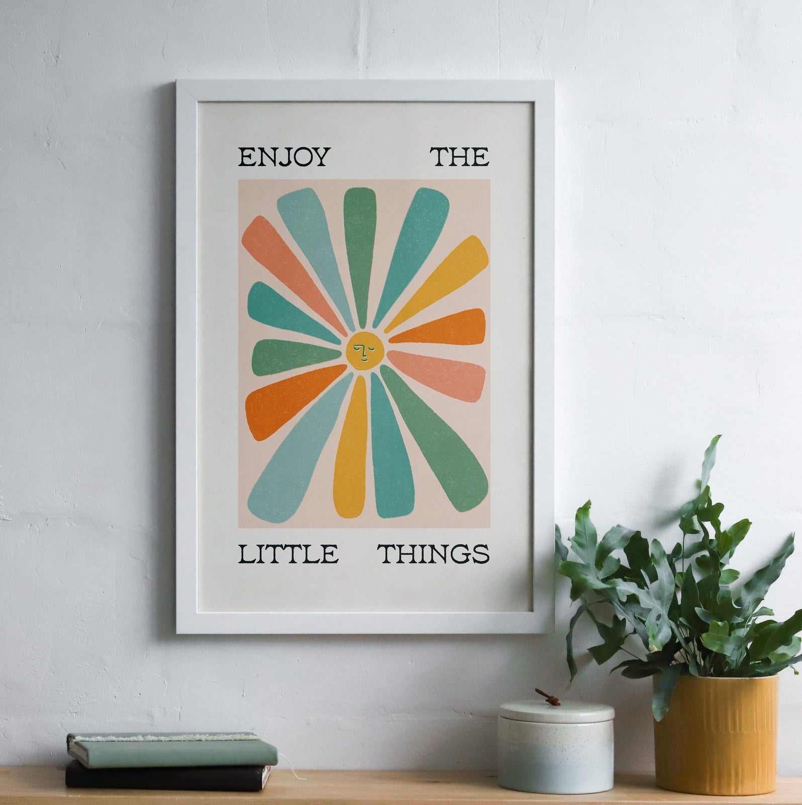 This joyful print features a fun flower illustration, with the words 'Enjoy the Little Things' above and below.