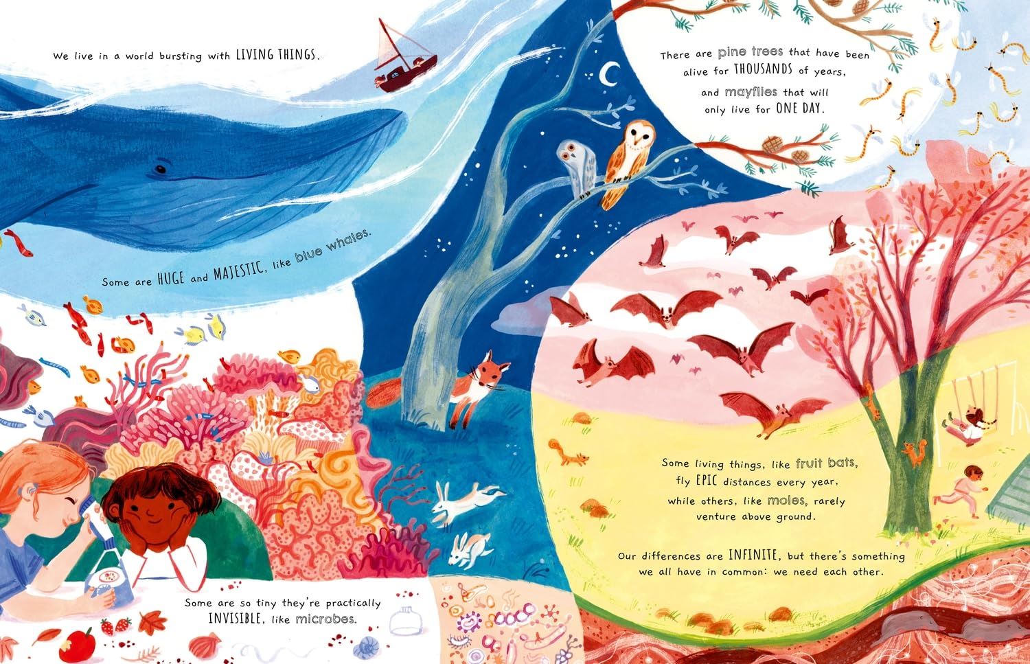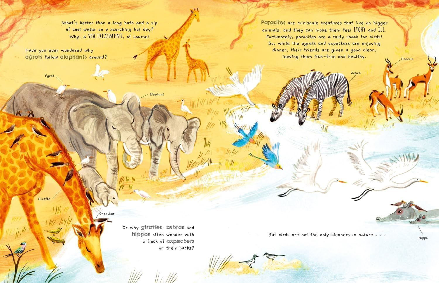All living things in the natural world depend on each another. There wouldn't be a coral reef without the help of the fish that live there. Rainforests are only filled with lush and colourful plants because of the birds and mammals which eat and scatter seeds. Acacia trees have a whole army of ants to protect them, while elephants rely on egrets to keep them parasite-free. And it's because of bees, wasps and butterflies that we have tasty fruit and vegetables to eat. An illustrated tale of symbiosis and ecology for children aged 5-7.