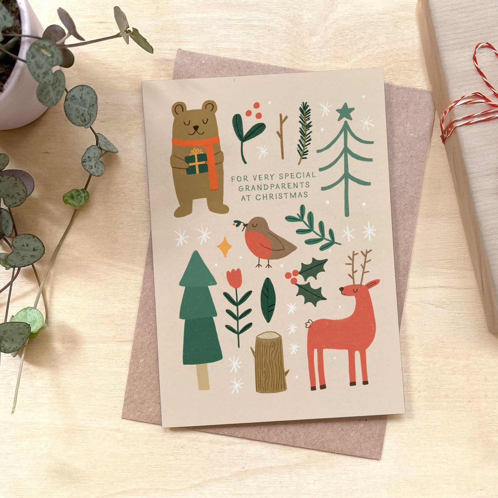 Grandparents Folky Christmas Recycled Coffee Cup Card