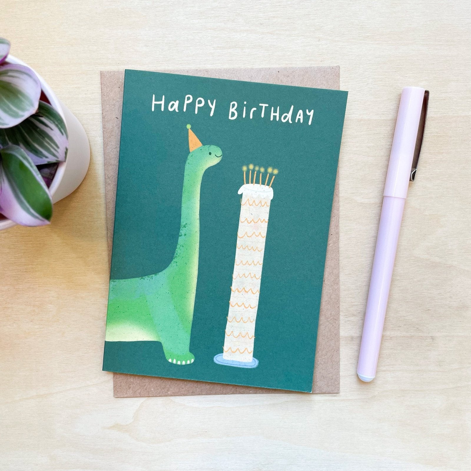 'Happy Birthday Dino' Recycled Coffee Cup Card