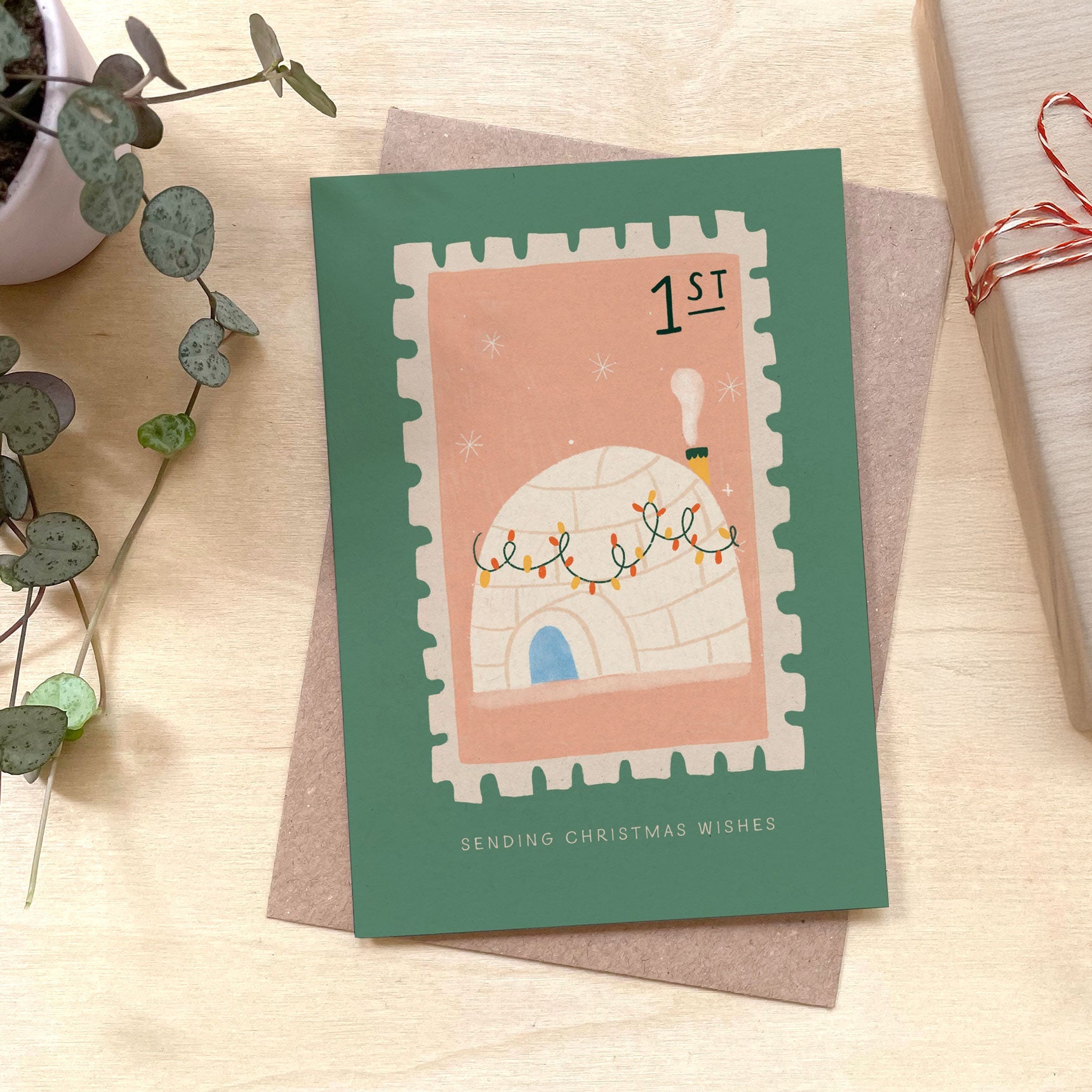 Igloo Stamp Christmas Recycled Coffee Cup Card