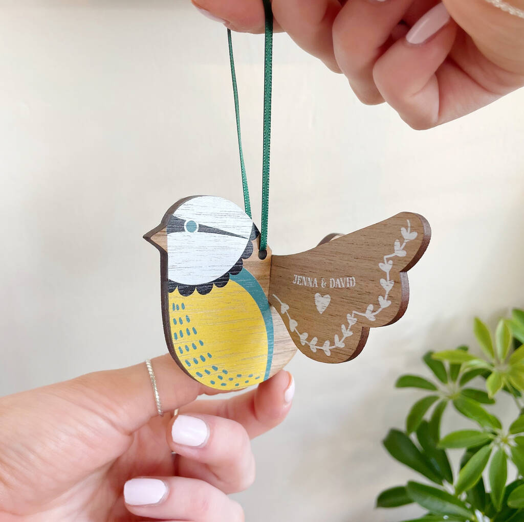 With the words 'love birds' appearing on the left wing and names to appear on the second, the bird makes a perfect gift for loved ones who are celebrating a special occasion such as an engagement, wedding, or moving into a new home.
