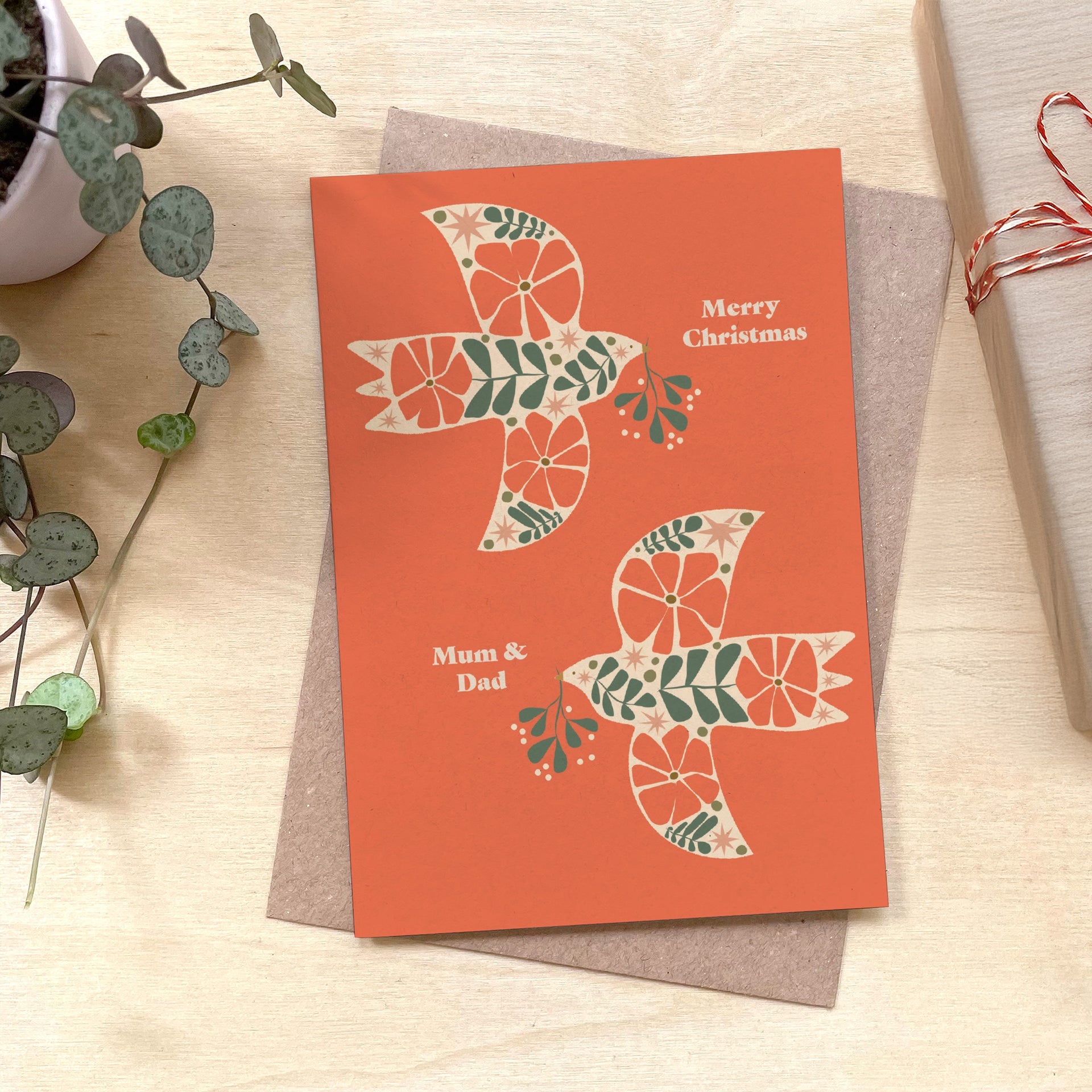 Merry Christmas Mum and Dad Recycled Coffee Cup Christmas Card