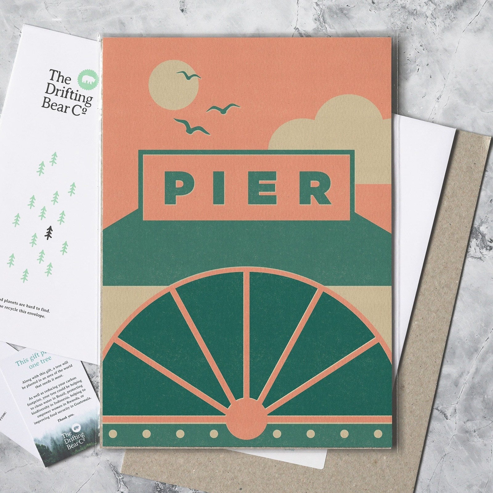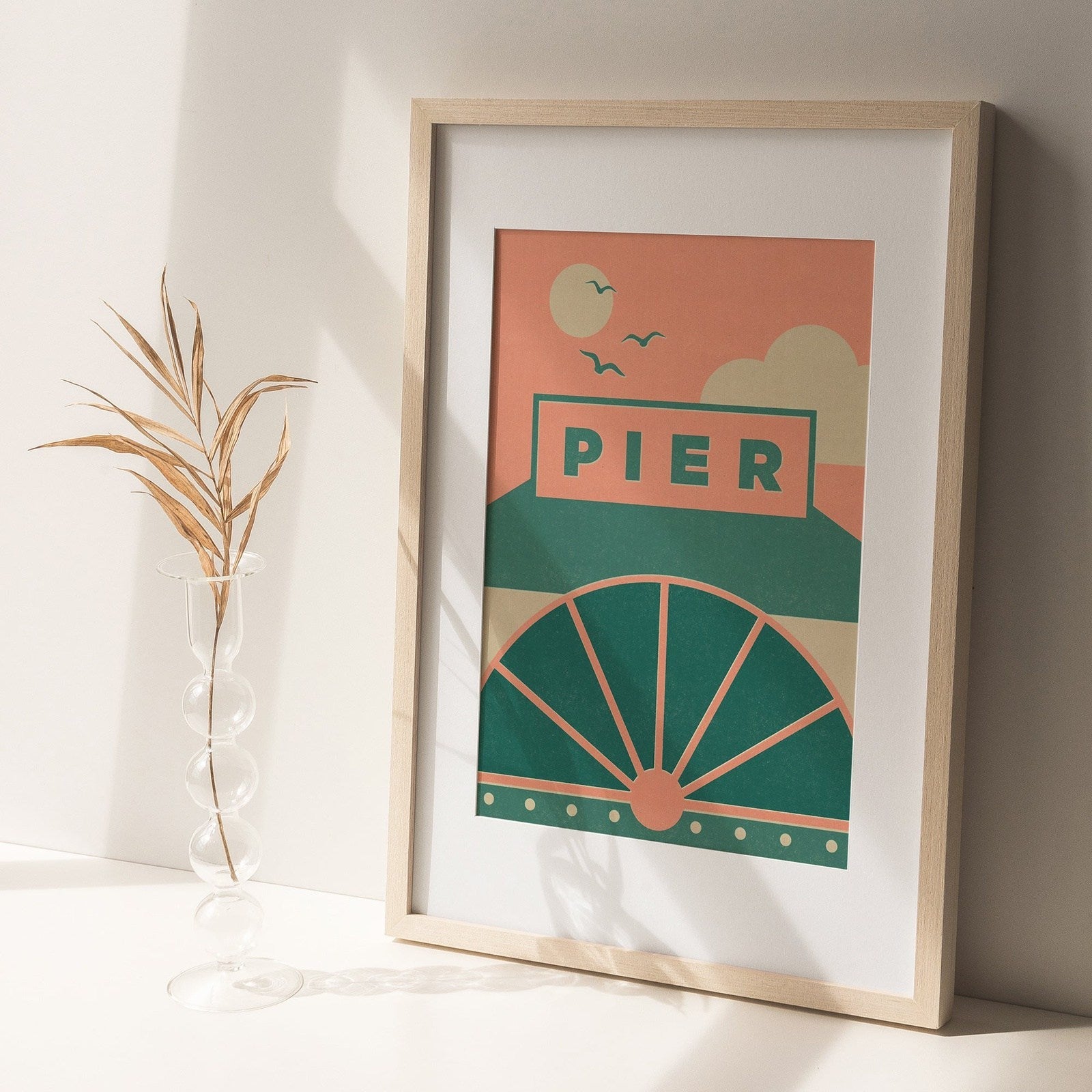 A screen-print style graphic illustration inspired by the traditional Pier in Teignmouth, Devon.