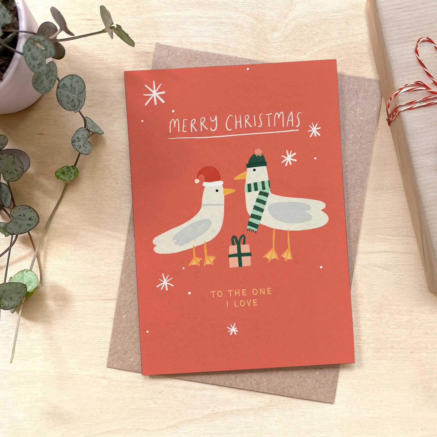 Seagull Love Christmas Recycled Coffee Cup Card