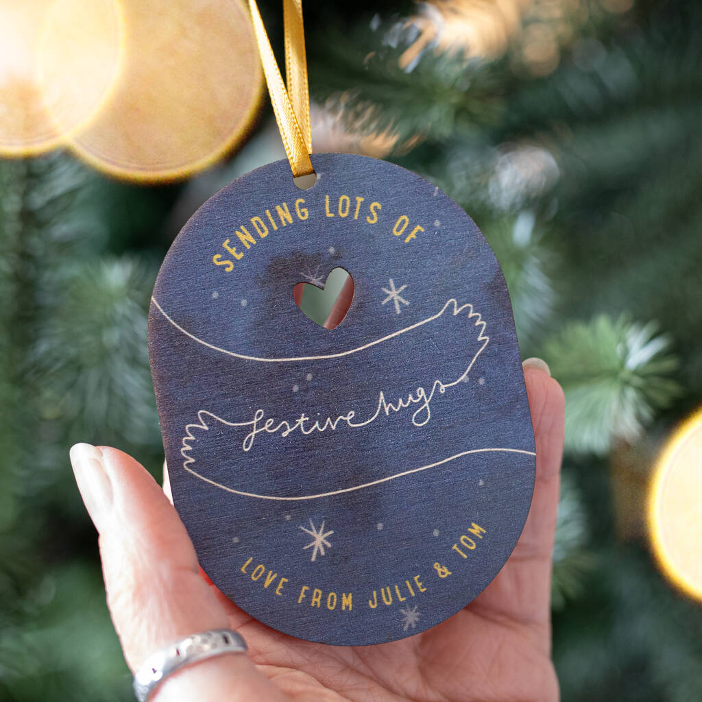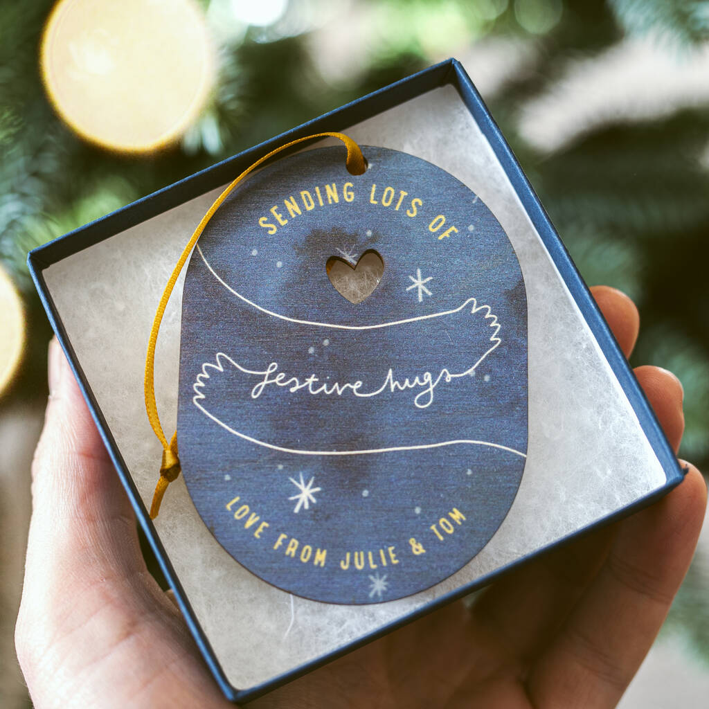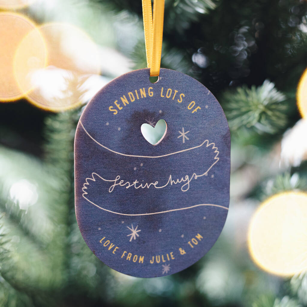 Send festive hugs to your nearest and dearest with this personalised Christmas bauble.