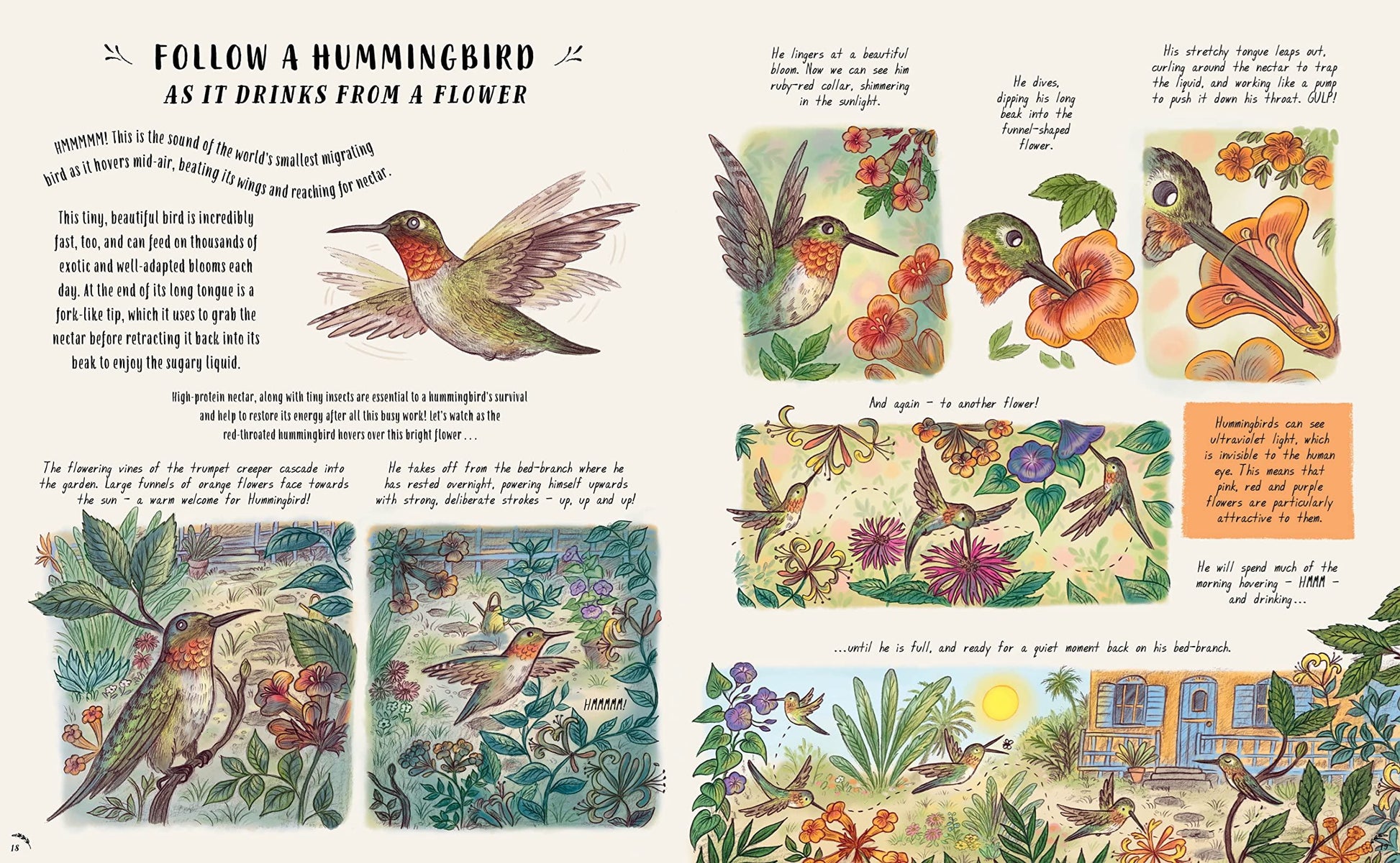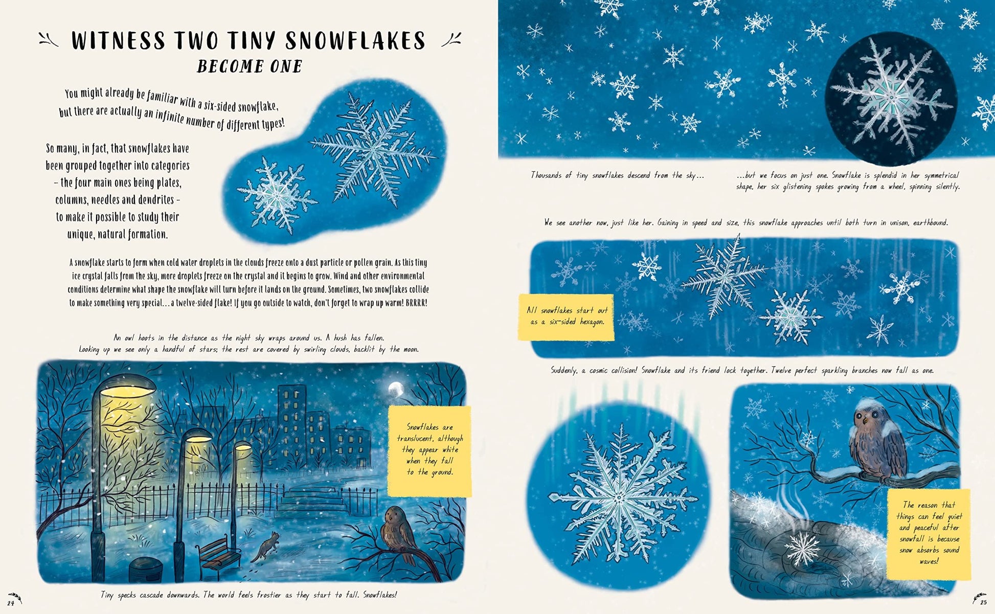 Zoom in to watch a hummingbird drink nectar; watch a pea shoot appear; see a little snail as s/he comes come out to drink. With charming text and real science, see nature up close and let it stop you in your tracks, so that you can truly find joy in the present moment.