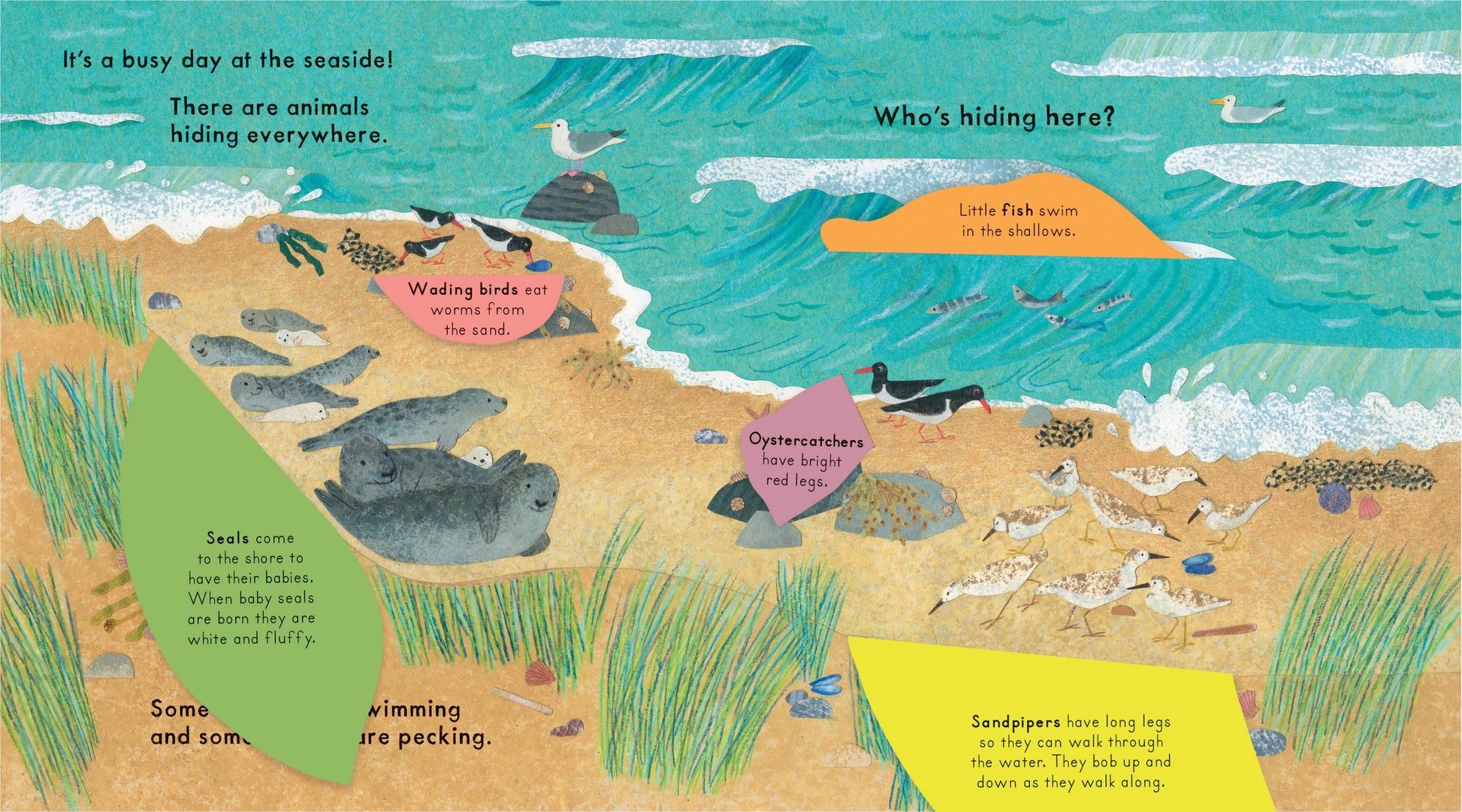 There are lots of animals at the seaside. Where are they hiding and what are they doing? In this innovative lift-the-flap book, little ones can pore over the beautiful collaged pages and explore under rocks, shells and seaweed to find out interesting facts about seaside wildlife. Published in association with the National Trust.