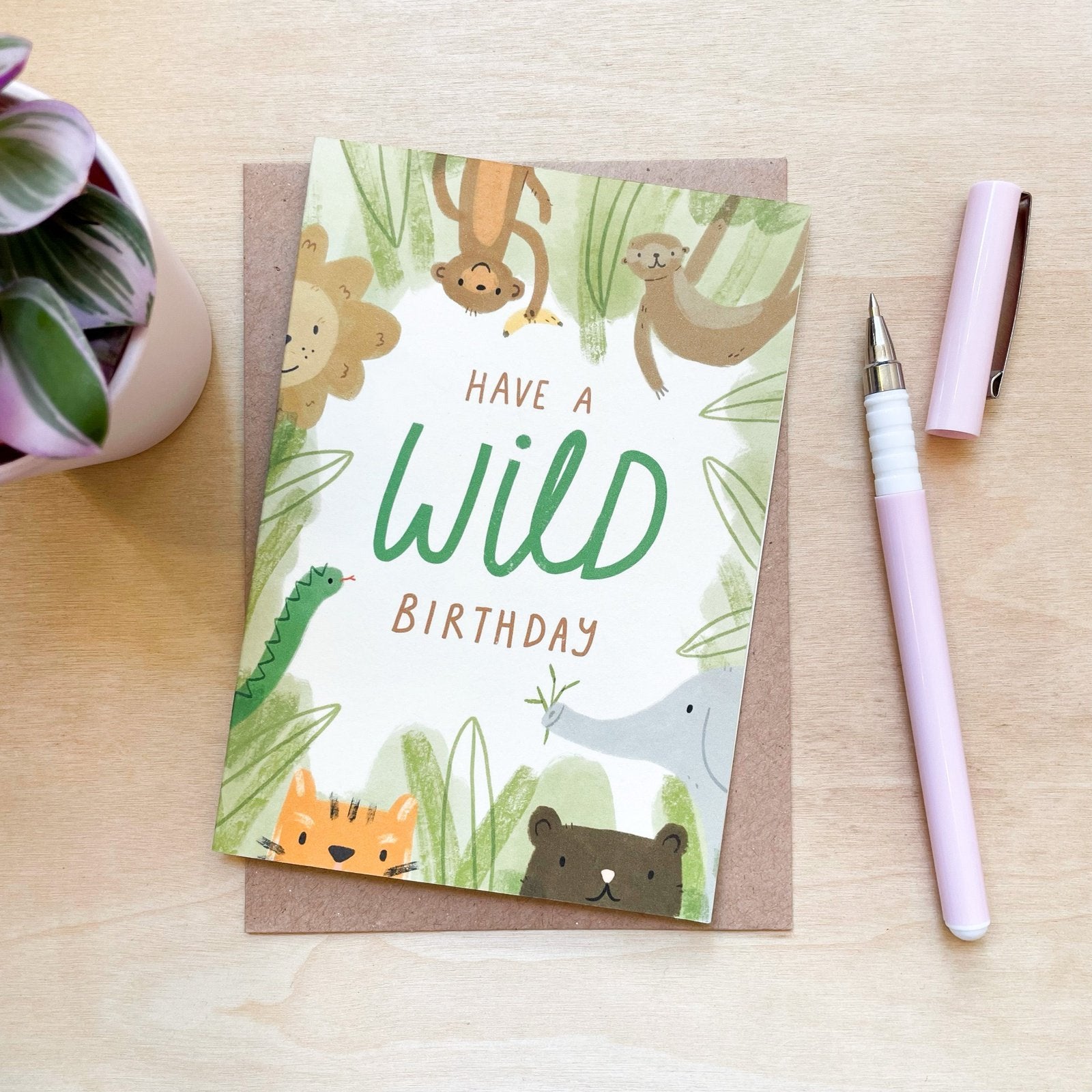 'Wild Safari Birthday' Recycled Coffee Cup Card