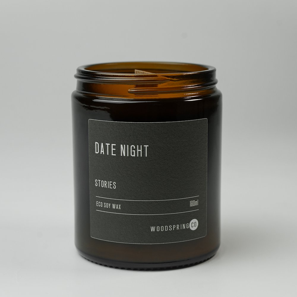 Date Night: A rich and warm scent with notes of musk rose mixed with the woody fragrance of oud wood and a hint of praline. Combined with a cotton wick, this luxury scent is perfect to set the mood.