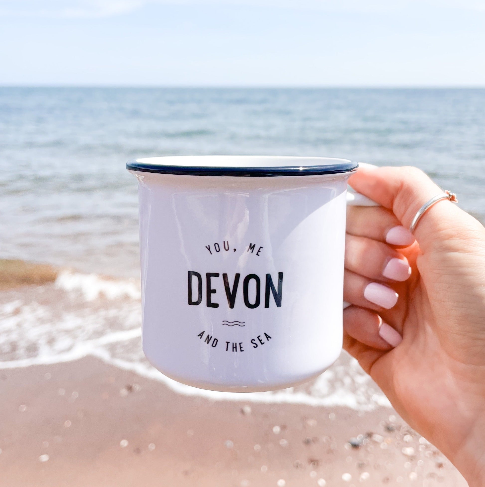 A perfect gift for locals and lovers of Devon, this ceramic camping style mug is ideal for taking on adventures or road tripping in a camper van.